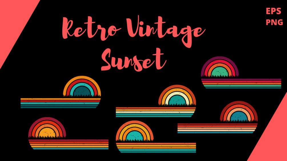 The package includes vintage retro striped sunset graphics.